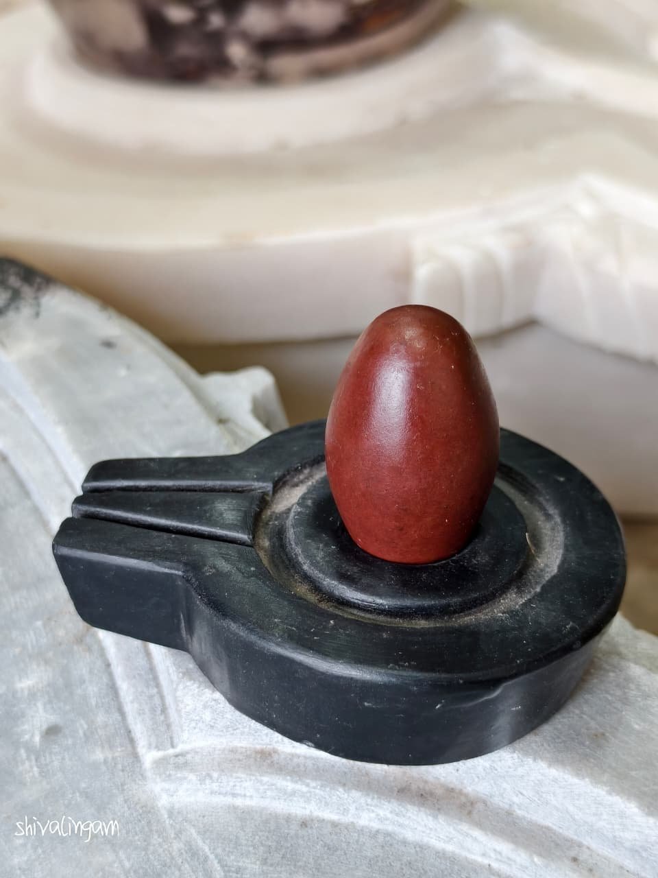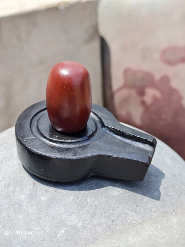 The brown coloration of this Shivling represents earth, stability, and transformation, while the black stone base signifies grounding and eternal balance — together symbolizing the perfect union of spiritual and material harmony.