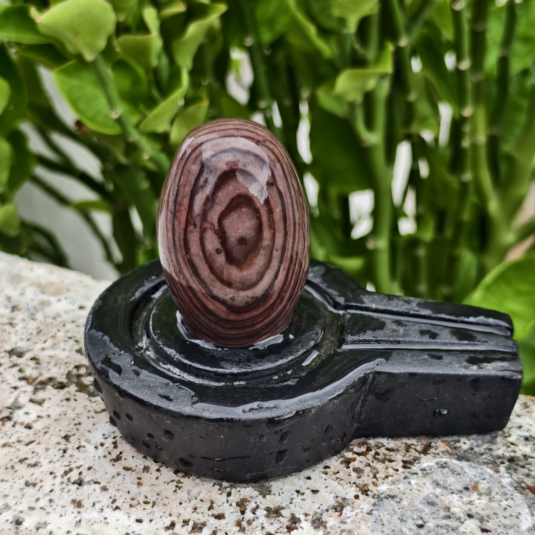 Introducing the Janyedhari Shivling, a rare and spiritually significant form of Narmadeshwar Shivling, named for its distinct “janeu-like” banded markings that naturally form across the stone. These unique concentric layers symbolize the eternal flow of energy and represent purity, devotion, and divine protection.