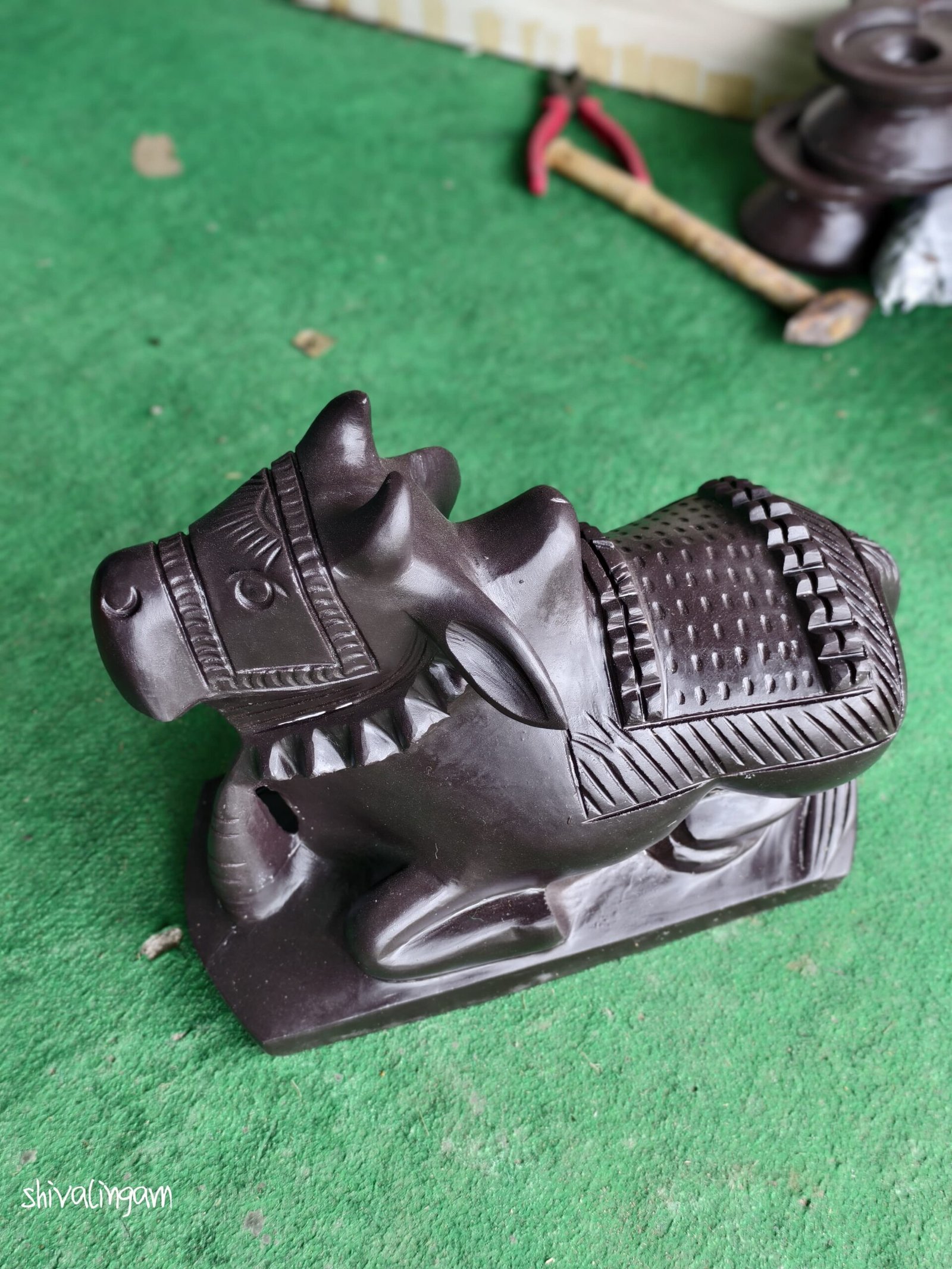 The idol features fine detailing that highlights Nandi’s peaceful posture, expressive features, and traditional ornaments. Because of its handcrafted nature, each piece displays unique artistic touches that enhance its authenticity. Moreover, the solid stone construction ensures durability and a timeless appearance, making it suitable for daily worship and long-term use.