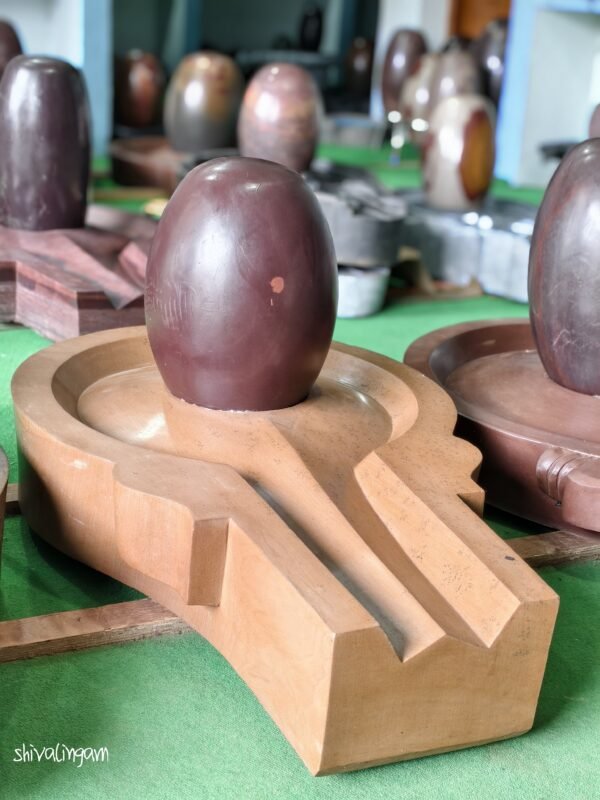 This large Narmadeshwar Shivling is naturally sourced from the sacred Narmada river and mounted on a finely carved beige stone jaladhari. Its smooth, polished surface and earthy brown tones reflect divine energy and make it perfect for temple installations, home mandirs, and grand Rudrabhishek ceremonies. This temple-sized Shivling is ideal for devotees seeking a centerpiece for daily worship or spiritual events, bringing peace and auspiciousness to any sacred space.