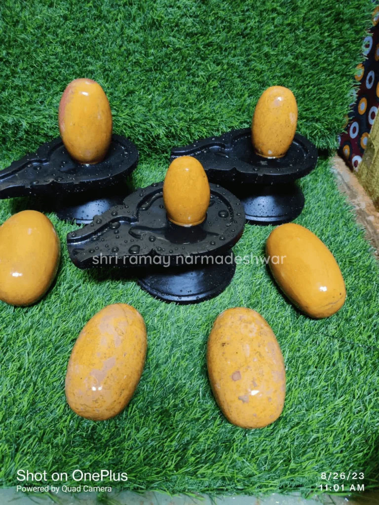 Believed to carry uplifting energy and divine vibrations, the Yellow Narmadeshwar Shivling is ideal for those seeking spiritual clarity, abundance, and higher consciousness in daily worship.